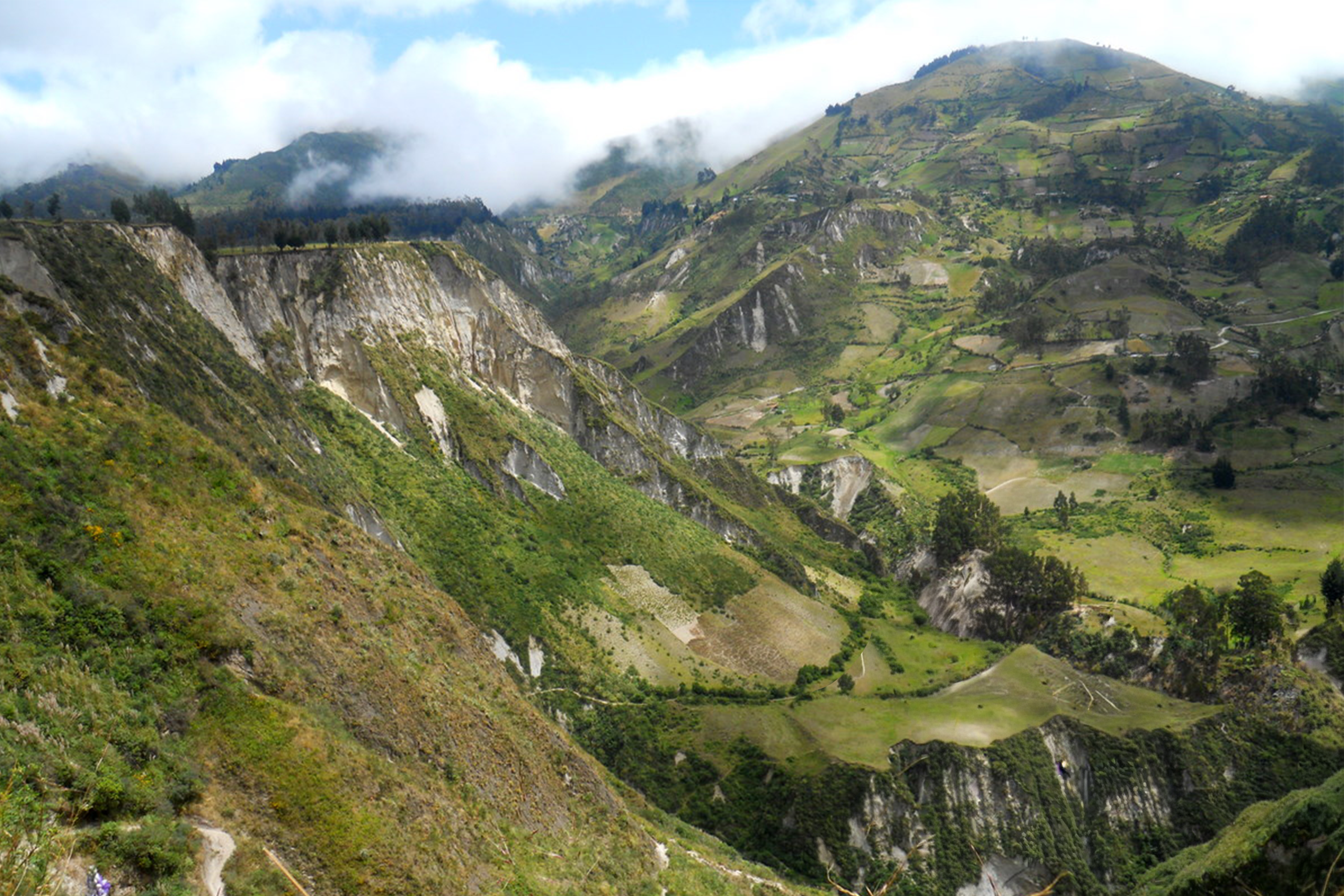 Las pendientes ante la laguna de Quilotoa. Adaptación de “Quilotoa -> Chugchilán” de Ramblurr. Bajo Licencia CC BY-NC-SA 2.0.